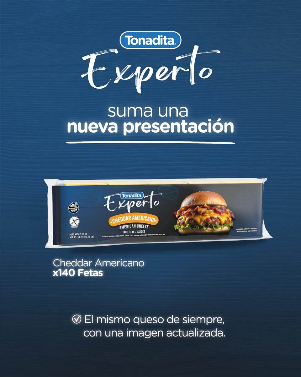 queso cheddar tipo americano en fetas ( pack x 140 fetas) peso total 1.66 kg